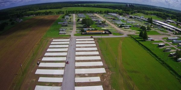 We have a variety of RV lots to suit your needs. Choices include limestone, concrete, covered limestone, covered concrete, or the coach house (covered concrete with outdoor kitchen and bathroom). All of our sites are back-ins with full hookups. Sewer, water, electricity, Wi-Fi, and cable access are included in your rent. Lots are rented on a temporary weekly or monthly basis and are first come, first served.